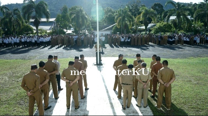 Media CenterKU - Penjabat Bupati Kayong Utara, Romi Wijaya pimpin apel gabungan di lapangan Kantor Bupati Kayong Utara, Sukadana, Senin 4 Maret, 2024.Dalam apel tersebut, Romi Wijaya menyoroti masalah gaji serta